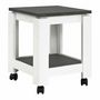 Informations Techniques : Dimensions : L. 35 x l. 35 x H. 45 cm Matière : MDF Spécificités : Tendance & Pratique Table d'Appoint Desserte Avec Roulettes 2 Niveaux Effet Granit Nombre de colis : 1 Poids : 6,93 kg Couleur : Blanc & Gris