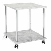Informations Techniques : Dimensions : L. 40 x P. 40 x H. 45 cm Matières : Acier & MDF Spécificités : Tendance & Moderne Table d'Appoint Desserte Forme Carrée Avec Roulettes 2 Plateaux A Monter Soi-Même Facile d'Entretien & d'Utilisation Poids : 4,32 kg Couleur : Gris