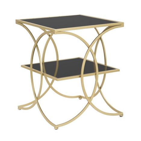 Informations Techniques : Dimensions : L. 45 x l. 45 x H. 55 cm Matières : Métal, MDF & Verre Spécificités : Pratique & Utile Table d'appoint design Double plateau en verre noir Forme carré Poids : 7 kg Couleur : Noir & Or