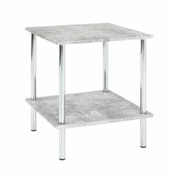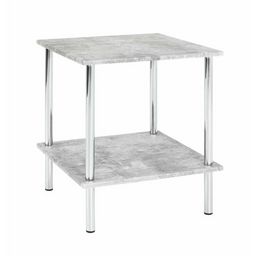 Informations Techniques : Dimensions : L. 39 x P. 39 x H. 45 cm Matières : Métal & MDF Spécificités : Tendance & Moderne Table d'Appoint Design Forme Carrée 2 Plateaux A Monter Soi-Même Facile d'Entretien & d'Utilisation Poids : 3,24 kg Couleur : Gris