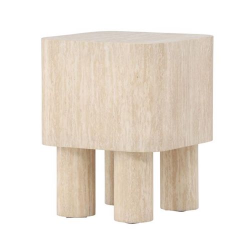Table d'Appoint Effet Travertin Klirou 50cm Beige