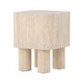 Informations Techniques : Dimensions : L. 40 x l. 40 x H. 50 cm Plateau : H. 30 cm Matière : MDF Spécificités : Pratique & Esthétique Table d'appoint carrée Effet travertin Poids max supporté : 100 kg Poids : 9 kg Couleur : Beige