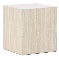 Informations Techniques : Dimensions : L. 40 x l. 40 x H. 45 cm Matière : MDF Spécificités : Élégante & Design Table d'appoint carrée Effet travertin Poids max supporté : 50 kg Poids : 10kg Couleur : Beige