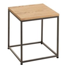 Informations Techniques : Dimensions : L. 40 x l. 40 x H. 42 cm Matières : Bois & Métal Spécificités : Original & Tendance Table d'Appoint Design Forme Carrée Piètement en Métal A monter soi-même Poids : 3 kg Couleur : Naturel