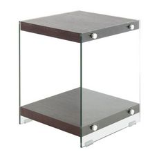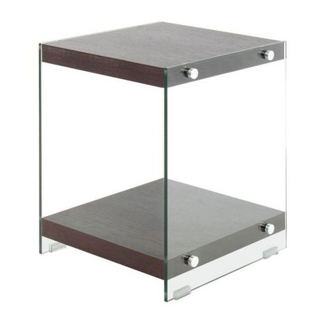 Informations Techniques : Dimensions : L. 35 x l. 35 x H. 45 cm Matières : MDF & Verre Spécificités : Pratique & Design Table d'Appoint Déco Grand Espace de Stockage Forme Carrée Facile d'Entretien Poids : 8,7 kg Couleur : Marron Foncé