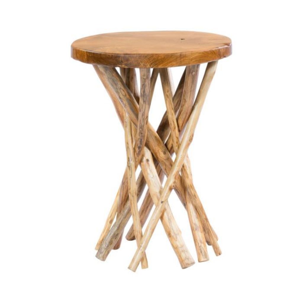 Informations Techniques : Dimensions : D. 40 x H. 55 cm Épaisseur plateau : 30 mm Matière : Bois de Teck Spécificités : Design & Naturel Table d'Appoint Construction Stable & Haute Qualité Capacité de charge : 20 kg Fabrication & Montage : Fait Main (Travail détaillé) A Monter Soi-Même Poids : 6 kg