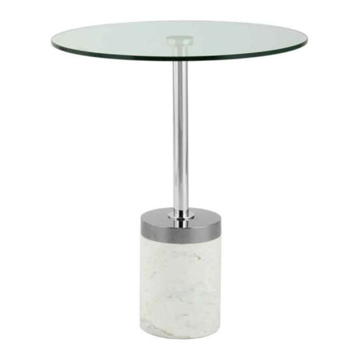 Table d'Appoint en Marbre Lana 53cm Argent & Blanc