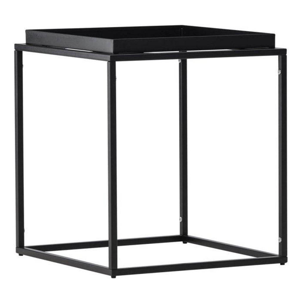 Informations Techniques : Dimensions : L. 45 x l. 45 x H. 51 cm Plateau : H. 6 cm Matière : Acier Spécificités : Minimaliste & Épurée Table d'appoint carrée Plateau avec rebord Revêtement en poudre époxy Nombre de colis : 1 Poids max supporté : 40 kg Poids : 4 kg Couleur : Noir