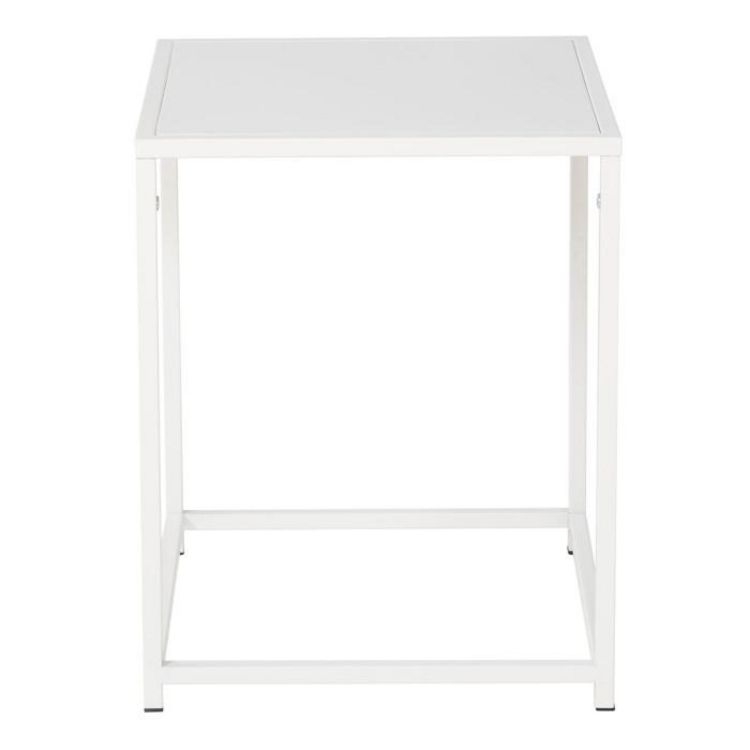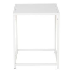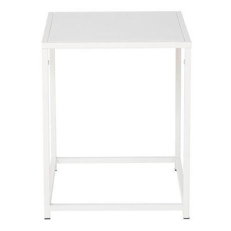 Informations Techniques : Dimensions : L. 38 x l. 37 x H. 45,7 cm Matière : Acier Spécificités : Moderne & Pratique Table d'appoint carrée Revêtement en poudre Nombre de colis : 1 Poids max supporté : 10 kg Poids : 2,5 kg Couleur : Blanc