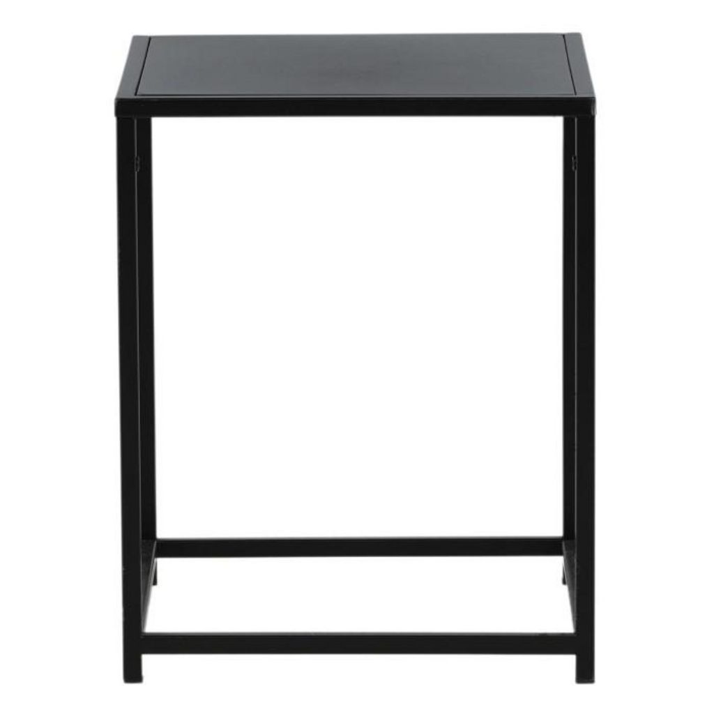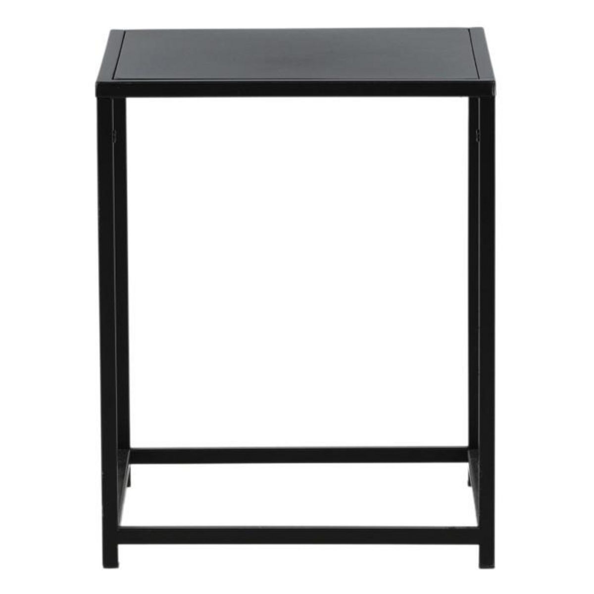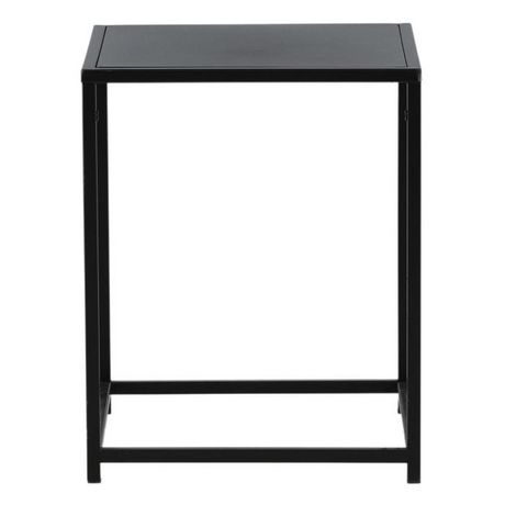 Informations Techniques : Dimensions : L. 38 x l. 37 x H. 45,7 cm Matière : Acier Spécificités : Moderne & Pratique Table d'appoint carrée Revêtement en poudre Nombre de colis : 1 Poids max supporté : 10 kg Poids : 2,5 kg Couleur : Noir
