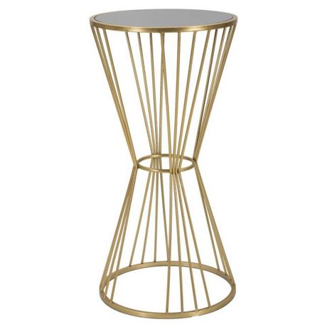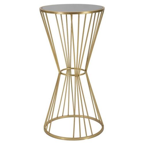 Informations Techniques : Dimensions : L. 40 x l. 40 x H. 80 cm Plateau : D. 37,5 cm Matières : Métal, MDF & Verre Spécificités : Pratique & Utile Table d'appoint ronde Forme sablier Plateau en verre miroir Poids : 3,5 kg Couleur : Or
