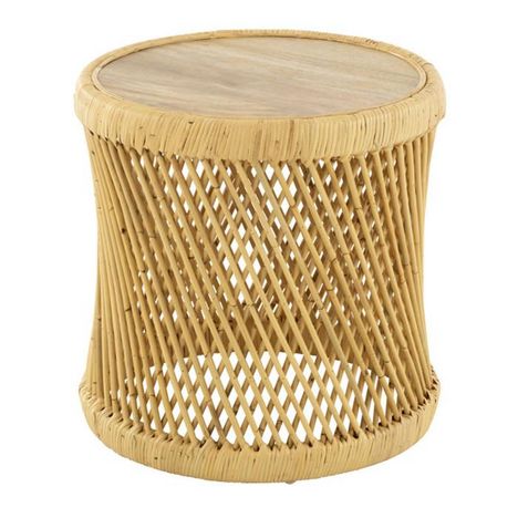 Table d'Appoint en Rotin Cylindre 50cm Naturel