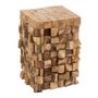 Informations Techniques : Dimensions : L. 30 x l. 30 x H. 45 cm Matière : Teck Spécificités : Tendance & Moderne Table d'Appoint Forme Carrée Design Morceaux de Bois de Teck Capacité Portante : 35 kg Poids : 18 kg Couleur : Naturel