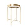 Informations Techniques : Dimensions : D. 39 x H. 50 cm Matière : Métal Spécificités : Pratique & Tendance Table d'appoint pliable Plateau avec rebord Forme ronde Poids : 1,62 kg Couleur : Or