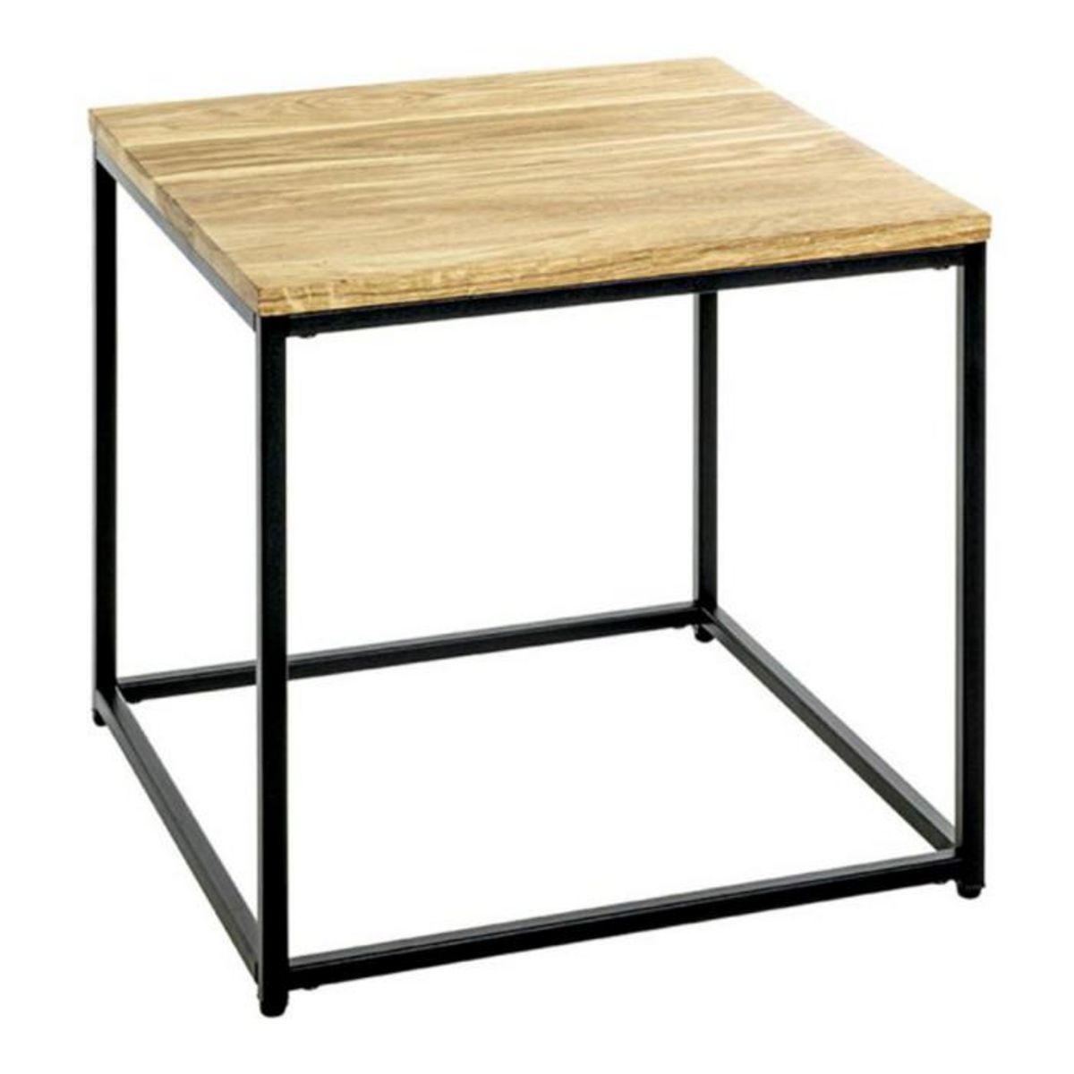 Informations Techniques : Dimensions : L. 45 x l. 45 x H. 45 cm Matières : Structure : Acier Plateau : Chêne Spécificités : Pratique & Déco Table d'appoint design Chêne huilé Fintion laquée Poids : 5,18 kg Couleur : Chêne & Noir