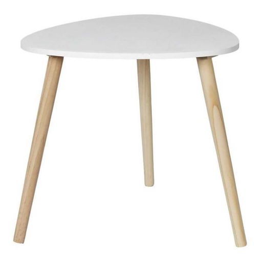 Informations Techniques : Dimensions : L. 48 x l. 48 x H. 46 cm Matières : Plateau : MDF Piètement : Bois (Pin) Spécificités : Compacte & Légère Table d'appoint triangulaire Style scandinave Bords arrondis À monter soi-même Poids : 1,88 kg Couleur : Blanc & Naturel