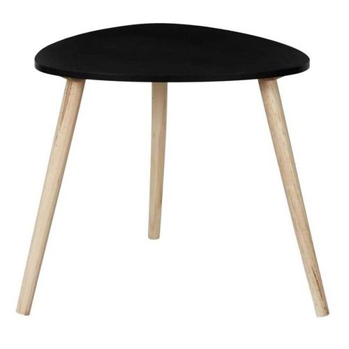 Informations Techniques : Dimensions : L. 48 x l. 48 x H. 46 cm Matières : Plateau : MDF Piètement : Bois (Pin) Spécificités : Compacte & Légère Table d'appoint triangulaire Style scandinave Bords arrondis À monter soi-même Poids : 1,88 kg Couleur : Noir & Naturel