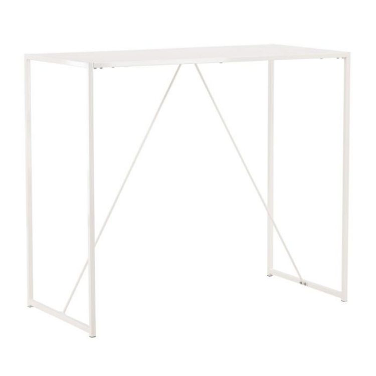 Informations Techniques : Dimensions : L. 120 x l. 60 x H. 105 cm Matières : Plateau : MDF Piètement : Acier Spécificités : Pratique & Tendance Table de bar design Jusqu'à 4 couverts Finition thermolaquée Forme rectangulaire Nombre de colis : 1 Poids max supporté : 40 kg Poids : 16,4 kg Couleur : B