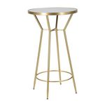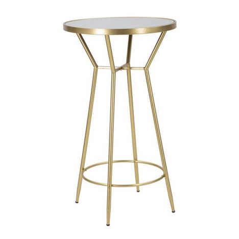 Informations Techniques : Dimensions : L. 60 x l. 60 x H. 105 cm Matières : Métal, MDF & Verre Spécificités : Pratique & Chic Table haute de bar Plateau en miroir Forme ronde Poids : 7,2 kg Couleur : Or