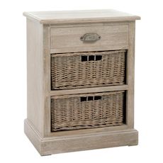 Table de chevet en bois naturel, un tiroir et 2 paniers.