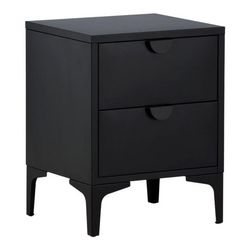 Informations Techniques : Dimensions : L. 45 x l. 40 x H. 59 cm Matière : Acier Spécificités : Design & Utile Table de chevet sur pied Avec 2 tiroirs Nombre de colis : 1 Poids max supporté : 10 kg Poids : 10,8 kg Couleur : Noir