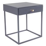 Informations Techniques : Dimensions : L. 43 x l. 41 x H. 50 cm Matière : Acier Spécificités : Élégante & Moderne Table de chevet design Avec un tiroir Revêtement en poudre Nombre de colis : 1 Poids max supporté : 50 kg Poids : 4,5 kg Couleur : Gris