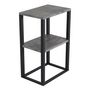 Informations Techniques : Dimensions : L. 45 x l. 30 x H. 70 cm Matières : Revêtement : MDF & Papier stratifié Piètement : Acier Spécificités : Intemporelle & Élégante Table de chevet design Avec 2 étagères Imitation béton Nombre de colis : 1 Poids max supporté : 50 kg Poids : 5,9 kg Couleur : Gris