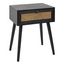 Informations Techniques : Dimensions : L. 40 x l. 30 x H. 50 cm Matières : Bois (Pin, Frêne), MDF & Rotin Spécificités : Tendance & Utile Table de chevet sur pied Tiroir cannage rotin Poids : 4 kg Couleur : Noir