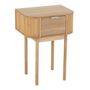 Informations Techniques : Dimensions : L. 53 x l. 40 x H. 67 cm Matières : 70% MDF, 15% Bois (Hévéa) & 15% Bois (Pin) Spécificités : Tendance & Fonctionnelle Table de chevet sur pied Avec un tiroir Poids max supporté : 50 kg Poids : 6,85 kg Couleur : Naturel