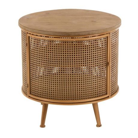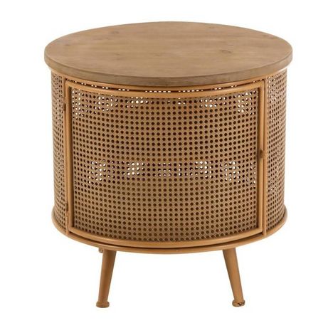 Informations Techniques : Dimensions : D. 59 x H. 58,5 cm Matières : Bois & Métal Spécificités : Tendance & Pratique Table de chevet 1 porte Avec étagère intérieure Forme ronde À monter soi-même Poids max supporté : 35 kg Poids : 8,99 kg Couleur : Marron