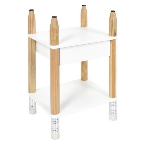 Table de Chevet Enfant Crayon 51cm Blanc & Beige