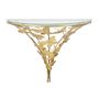 Informations Techniques : Dimensions : L. 44,5 x l. 24,5 x H. 34,5 cm Matières : Plateau : Verre Piètement : Métal Spécificités : Pratique & Déco Table de chevet mural design Plateau en verre transparent Ornement papillons Forme demi-cercle Poids : 1,66 kg Couleur : Or