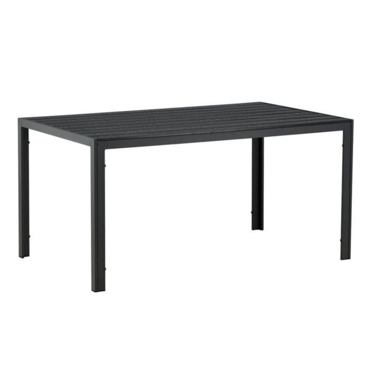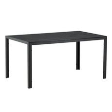 Informations Techniques : Dimensions : L. 150 x l. 90 x H. 75 cm Plateau : H. 3 cm Matières : Aluminium & Polystyrène Spécificités : Robuste & Moderne Table d'extérieur rectangulaire Jusqu'à 6 convives Plateau aspect bois Revêtement enrobage Poids max supporté : 50 kg Poids : 19 kg Couleur : Noir