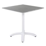 Informations Techniques : Dimensions : L. 70 x l. 70 x H. 74 cm Plateau : H. 4 cm Matières : Aluminium & Polystyrène Spécificités : Pratique & Classique Table d'extérieur Plateau aspect bois Revêtement en poudre Poids : 11 kg Couleur : Gris & Blanc