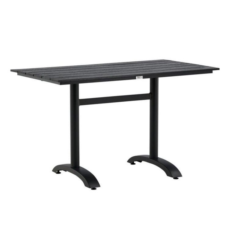 Informations Techniques : Dimensions : L. 120 x l. 70 x H. 74 cm Plateau : H. 2,5 cm Matières : Aluminium & Polystyrène Spécificités : Solide & Intemporelle Table d'extérieur rectangulaire Jusqu'à 4 convives Plateau aspect bois Revêtement enrobage Poids max supporté : 100 kg Poids : 14 kg Couleur :