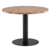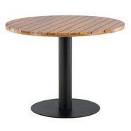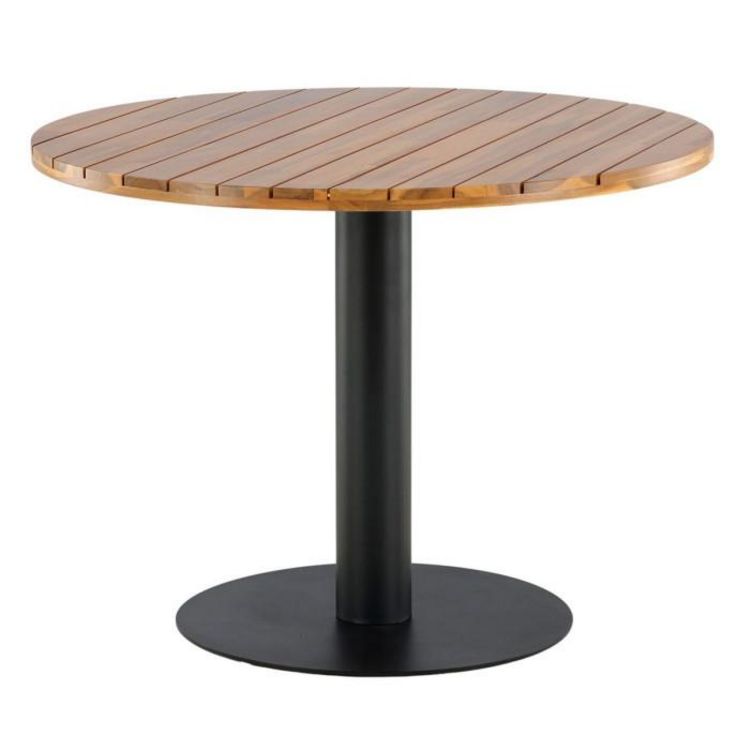 Informations Techniques : Dimensions : D. 100 x H. 74 cm Plateau : H. 2,5 cm Matières : Bois (Acacia) & Acier Spécificités : Pratique & Élégante Table ronde d'extérieur Jusqu'à 4 convives Revêtement en poudre Poids max supporté : 70 kg Poids : 27 kg Couleur : Naturel & Noir