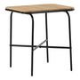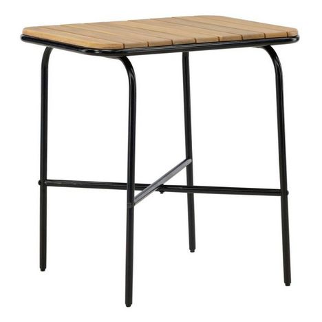 Informations Techniques : Dimensions : L. 88 x l. 70 x H. 74 cm Plateau : H. 3,3 cm Matières : Bois (Acacia) & Acier Spécificités : Moderne & Robuste Table d'extérieur Jusqu'à 2 convives Plateau nervuré Poids max supporté : 50 kg Poids : 8 kg Couleur : Naturel & Noir