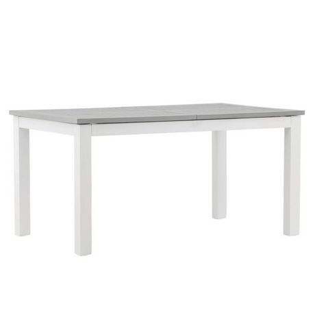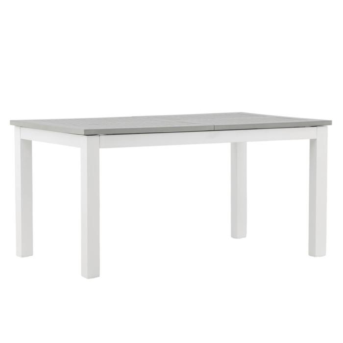 Informations Techniques : Dimensions : L. 152-210 x l. 90 x H. 74 cm Plateau : H. 10 cm Matières : Aluminium & Polystyrène Spécificités : Pratique & Intemporelle Table à manger d'extérieur Extensible de 152 à 210 cm Résistante aux intempéries Couleur : Blanc & Gris