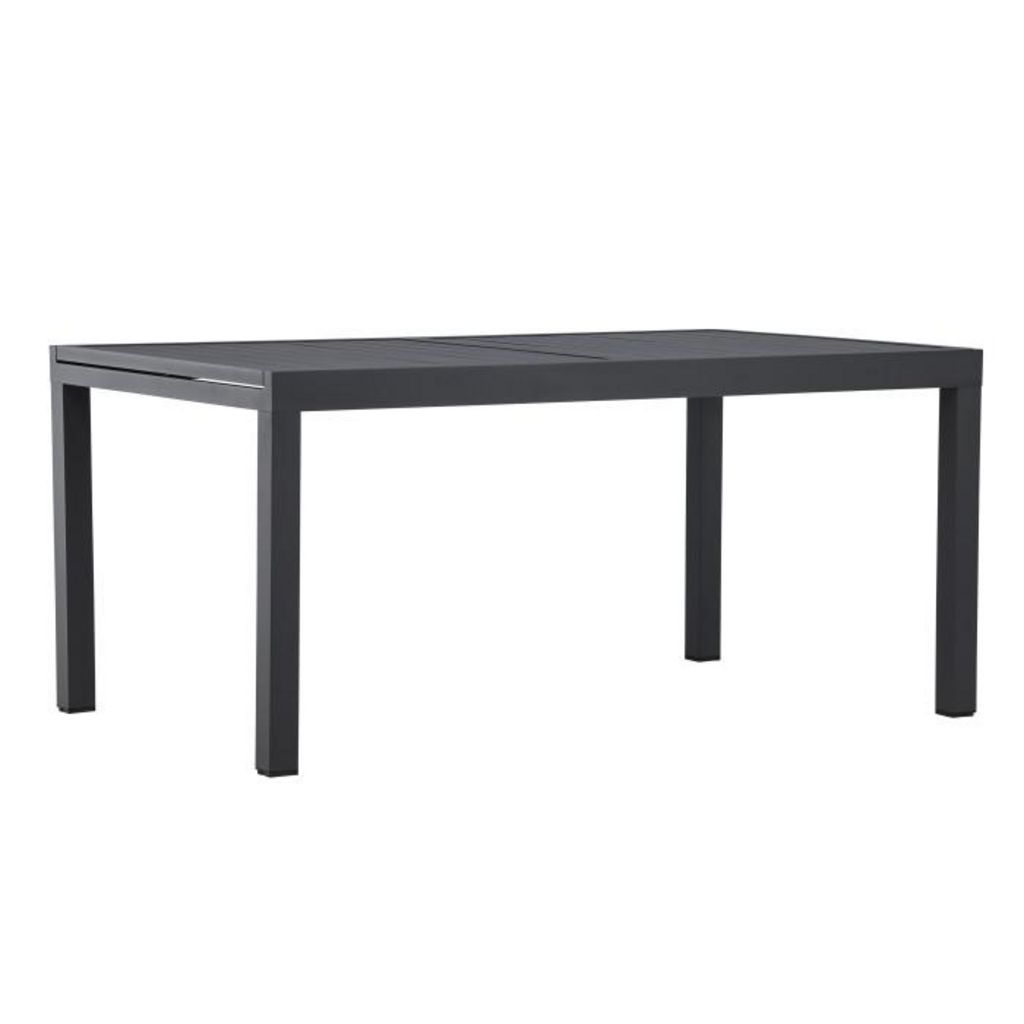 Informations Techniques : Dimensions : L. 160-240 x l. 100 x H. 75 cm Plateau : H. 5 cm Matière : Aluminium Spécificités : Pratique & Intemporelle Table à manger d'extérieur Extensible de 160 à 240 cm Poids : 23,5 kg Couleur : Noir