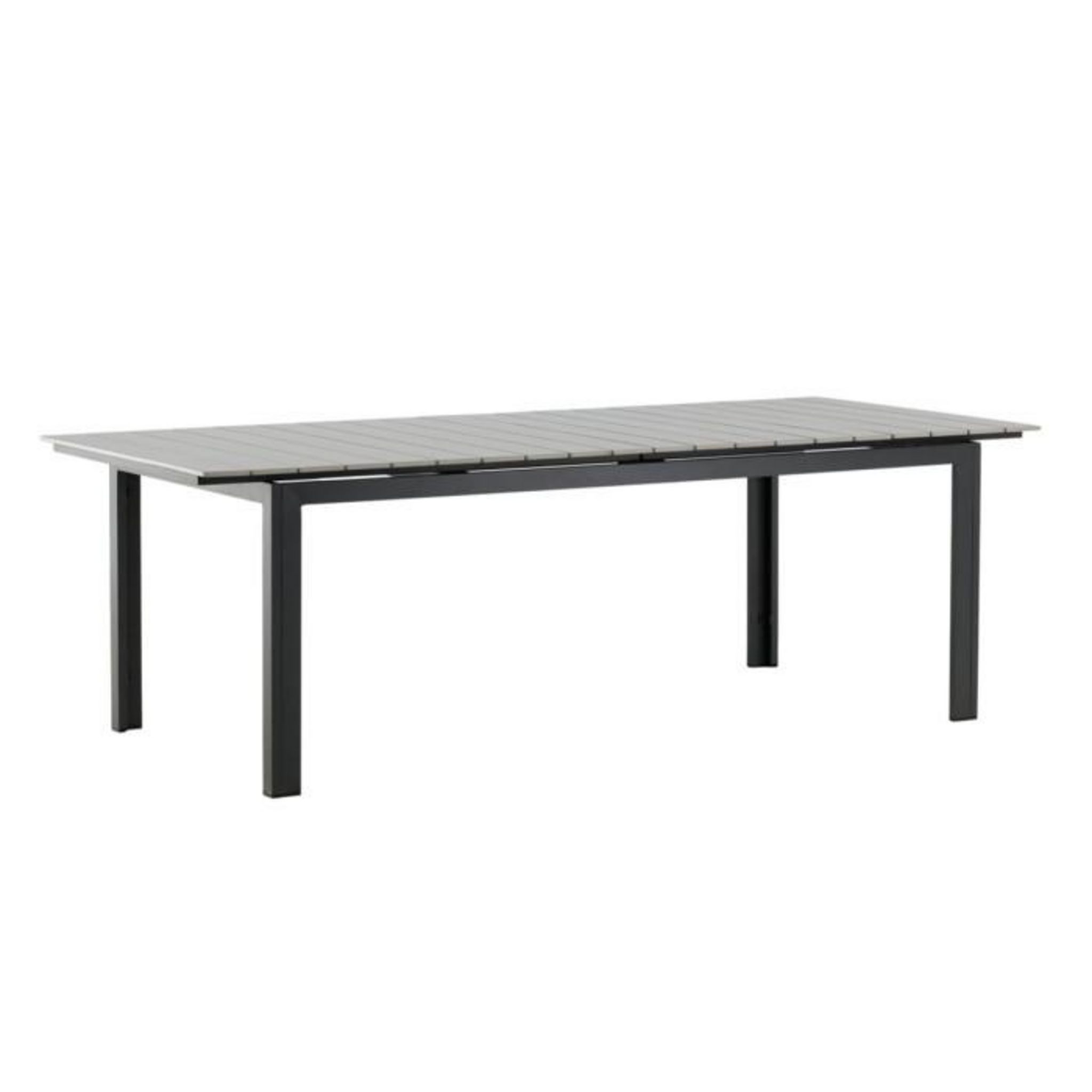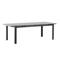 Informations Techniques : Dimensions : L. 229-310 x l. 100 x H. 75 cm Plateau : H. 2 cm Matières : Aluminium & Polystyrène Spécificités : Élégante & Pratique Table d'extérieur extensible Jusqu'à 6 convives (sans extension) Plateau aspect bois Revêtement enrobage Poids max supporté : 150 kg Poids : 4