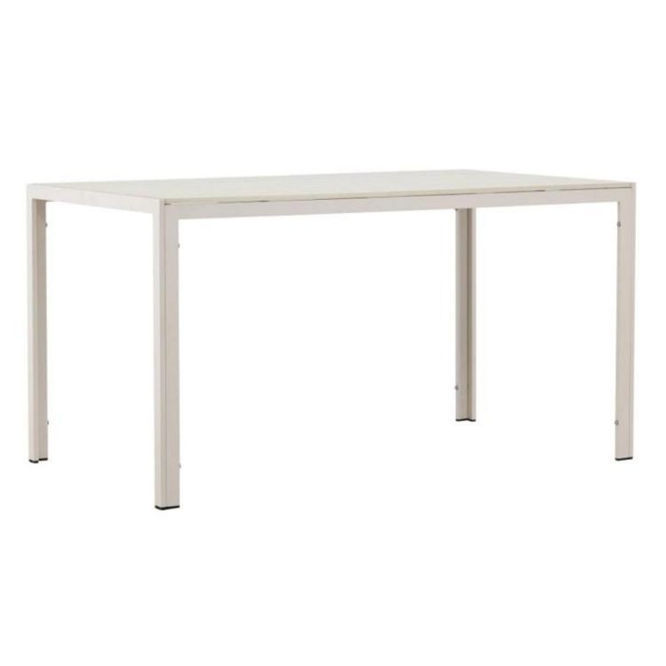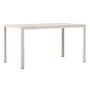 Informations Techniques : Dimensions : L. 140 x l. 80 x H. 74 cm Plateau : H. 1,2 cm Matières : Aluminium & Bois (Contreplaqué) Spécificités : Élégante & Robuste Table à manger d'extérieur Plateau rectangulaire Poids max supporté : 60 kg Poids : 14 kg Couleur : Beige