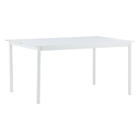 Informations Techniques : Dimensions : L. 150 x l. 100 x H. 75 cm Matière : Aluminium Spécificités : Robuste & Moderne Table d'extérieur rectangulaire Jusqu'à 4/6 convives Poids max supporté : 150 kg Poids : 22 kg Couleur : Blanc
