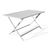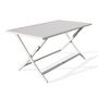Informations Techniques : Dimensions : Dépliée : L. 140 x l. 80 x H. 73 cm Pliée : L. 140 x l. 19 x H. 103,5 cm Matière : Aluminium Spécificités : Légère & Compacte Table d'extérieur pliante Pour 4 personnes Forme rectangulaire Nombre de colis : 1 Poids : 9,7 kg Couleur : Gris