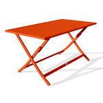 Informations Techniques : Dimensions : Dépliée : L. 140 x l. 80 x H. 73 cm Pliée : L. 140 x l. 19 x H. 103,5 cm Matière : Aluminium Spécificités : Légère & Compacte Table d'extérieur pliante Pour 4 personnes Forme rectangulaire Nombre de colis : 1 Poids : 9,7 kg Couleur : Orange