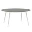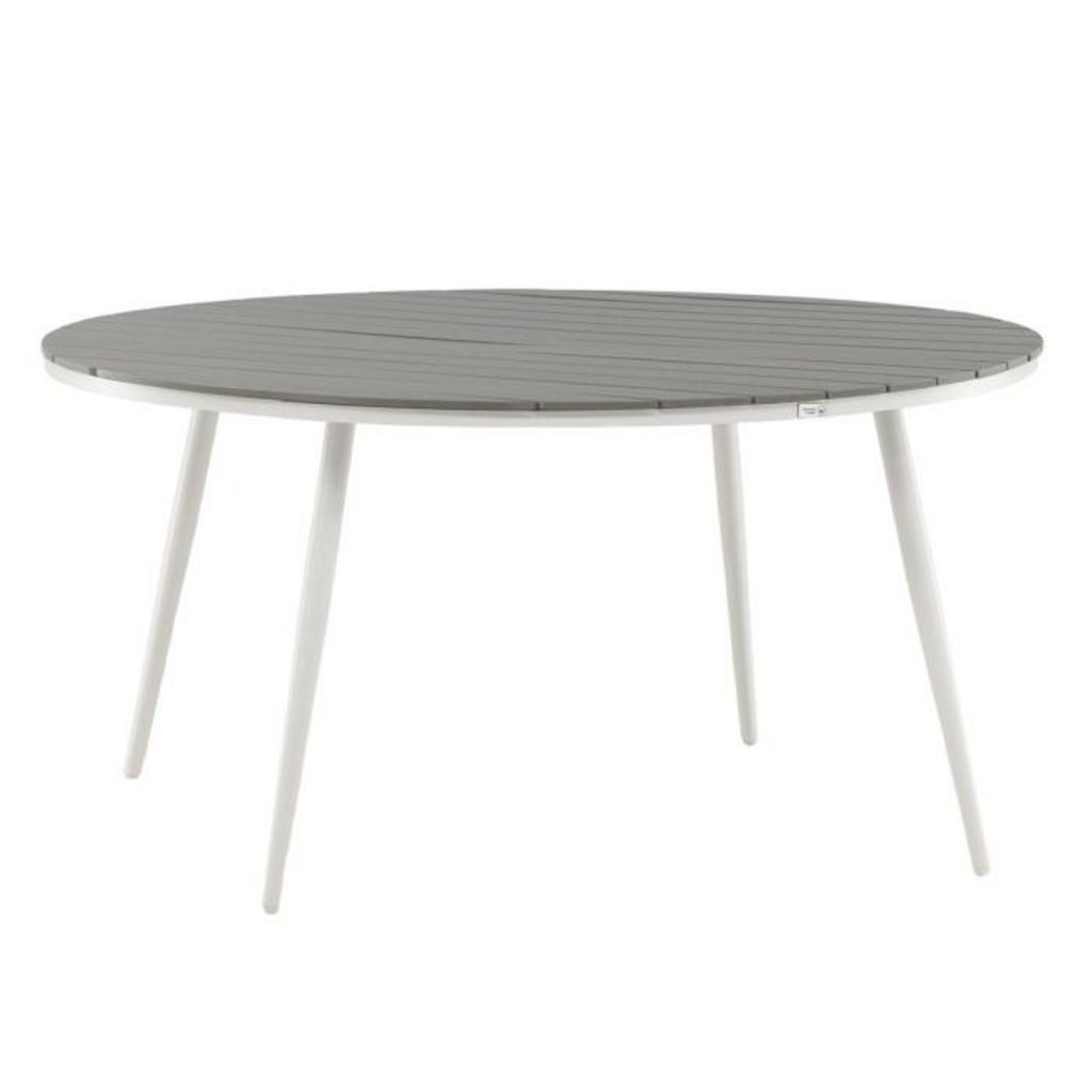 Informations Techniques : Dimensions : D. 150 x H. 74 cm Plateau : H. 3 cm Matières : Aluminium & Polystyrène Spécificités : Robuste & Moderne Table d'extérieur ronde Jusqu'à 4 convives Plateau aspect bois Revêtement enrobage Poids max supporté : 50 kg Poids : 20 kg Couleur : Blanc & Gris