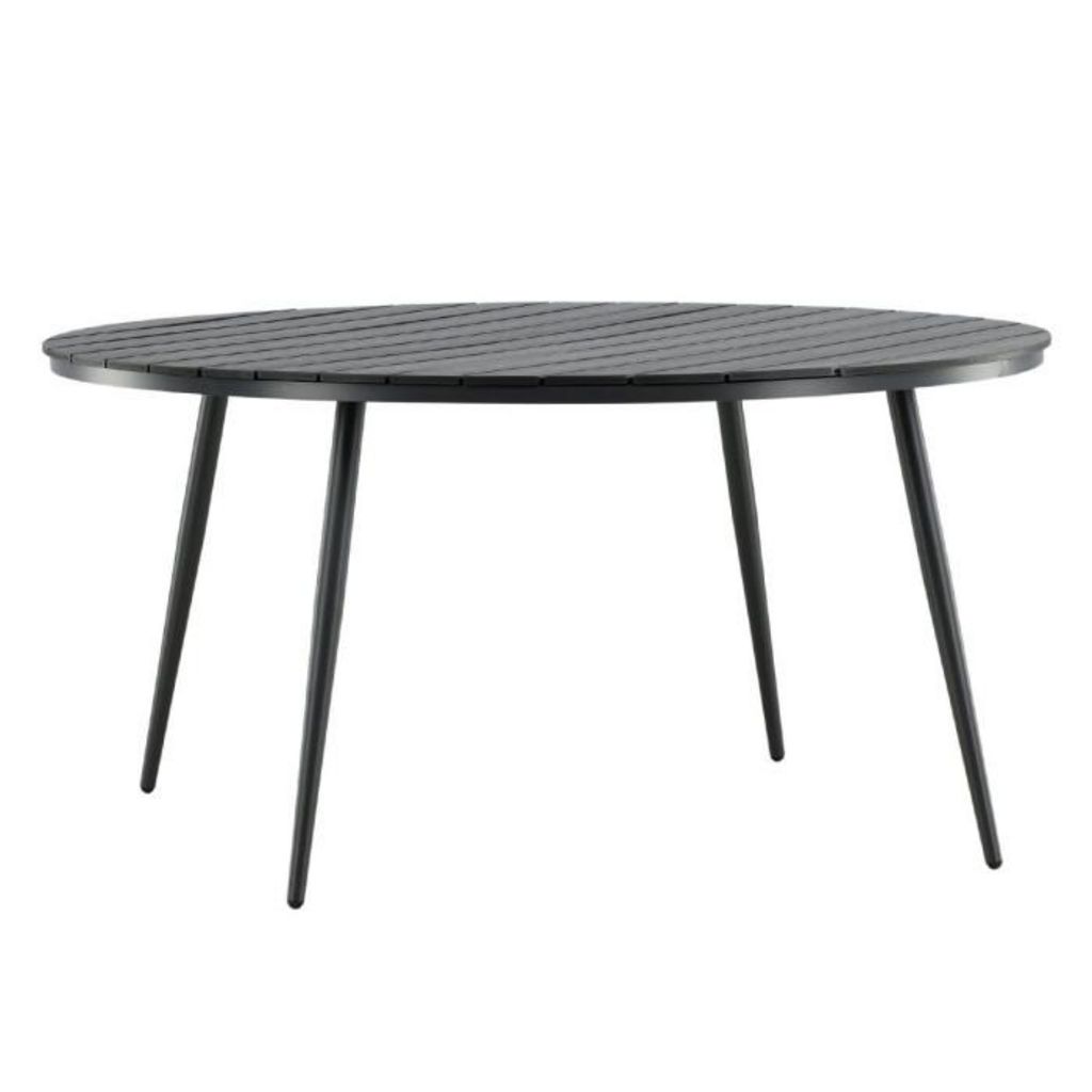 Informations Techniques : Dimensions : D. 150 x H. 74 cm Plateau : H. 3 cm Matières : Aluminium & Polystyrène Spécificités : Robuste & Moderne Table d'extérieur ronde Jusqu'à 4 convives Plateau aspect bois Revêtement enrobage Poids max supporté : 50 kg Poids : 20 kg Couleur : Noir