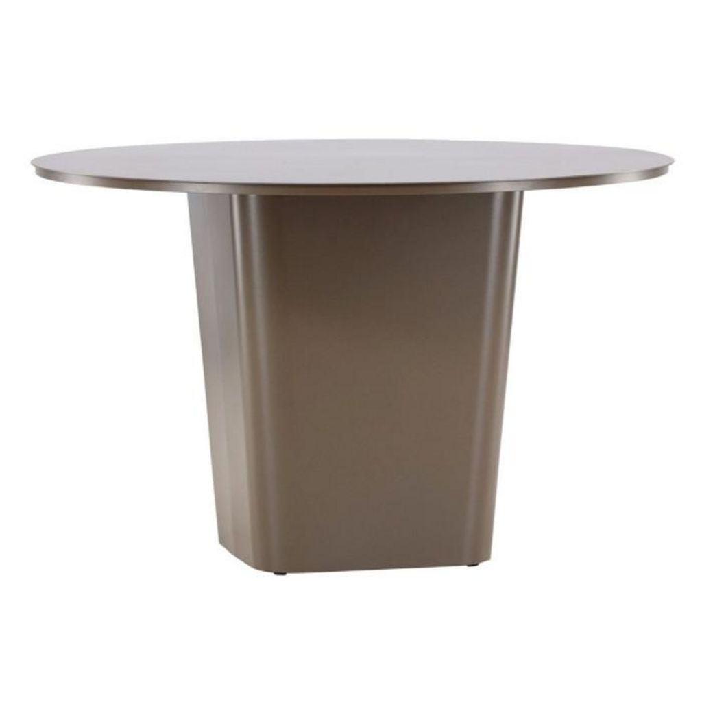 Informations Techniques : Dimensions : D. 120 x H. 75 cm Plateau : H. 2 cm Matière : Aluminium Spécificités : Élégante & Design Table de jardin ronde Jusqu'à 4 convives Revêtement en poudre Poids max supporté : 25 kg Poids : 23 kg Couleur : Marron