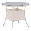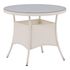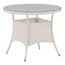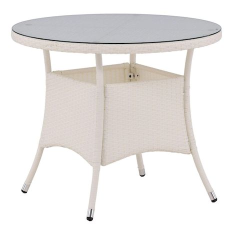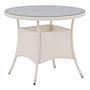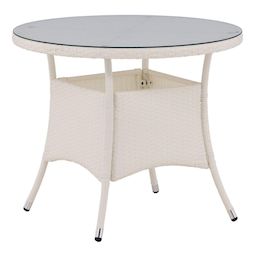 Informations Techniques : Dimensions : D. 90 x H. 74 cm Plateau : H. 5 cm Matières : Verre, Polypropylène & Aluminium Spécificités : Élégante & Robuste Table de jardin ronde Effet rotin Plateau en verre Jusqu'à 4 convives Résistante aux UV Revêtement en poudre Poids max supporté : 75 kg Poids : 13 k