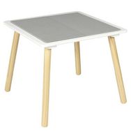 Informations Techniques : Dimensions : L. 52 x l. 52 x H. 44 cm Matière : Bois (Pin) Spécificités : Design & Original Plateau Compatible Briques Facile d'entretien & d'utilisation Couleur : Naturel & Gris