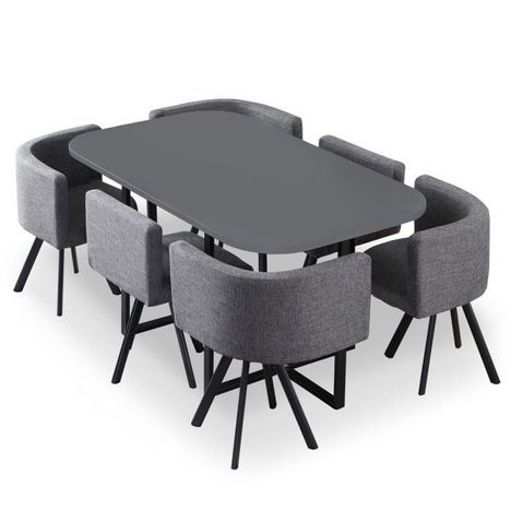 Table de Repas & 6 Chaises Design Normi 150cm Gris